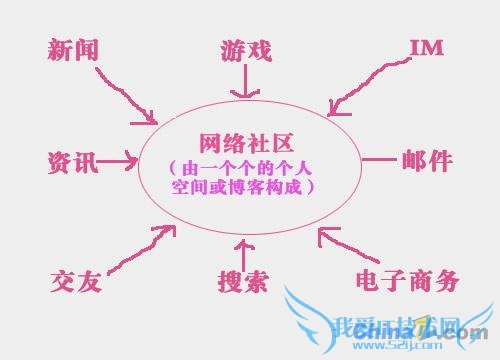 这里面的交际区域应该是最核心的内容,因为互联网一个重要的意义就在于联系,交际区域要通过各种功能把人联系起来,例如好友列表、留言版等;还要通过各种主题把人联系起来,比如校友、同事、FANS群、爱好者、活动等等,这是扩大影响力和提高粘性的重点。
