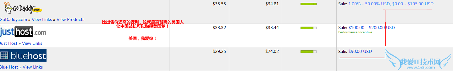美国人的生意经总是出人意料之外的,比如GODADDY的一个主机使用折扣码后加上一个国家域名只要四十多美元,但是他给联盟网站的返利就达105美元!我只能用“我擦”来表达我对美国佬智商的怀疑与无语了。我想大家可能也会跟我一样的感受,对此是如此的难以理解。
