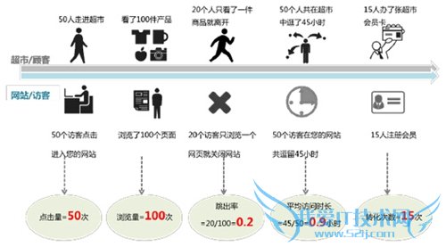 网站分析中都用到哪些衡量指标?又如何分析这些指标呢?举个例子来说明,如果把一个网站比作一家超市,运营网站就像打理超市的生意,那么目标就是让访客多停留、多购买、多办几张会员卡。为了达成这个目标,我们先要了解当前的情况,比如有多少人走进了超市、看了多少件产品、多少人办理了会员卡;类似地,在网站分析中我们也要了解这些数据,并作为后续业务调整的依据:比如,多少人进入了网站、浏览了多少页面、多少人办理会员等,网站分析指标是数据化地呈现网站运营的状况,帮助站长从各维度了解访客,优化网站。常见指标为:浏览量(PV)、访问次数、访客数(UV)、新访客数、新访客比率、IP、跳出率、平均访问时长、平均访问页数、转化次数、转化率。可以概况为3类,流量数量指标,流量质量指标,流量转化指标。