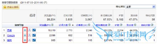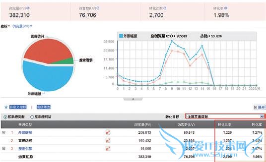 在百度统计中可以分别在后台设置“页面转化目标”和“事件转化目标”。在全部来源等多个报告均可查看设置成功的转化指标,如下图所示,另外,搜索引擎、搜索词、外部链接、地域等各个报告可以对比相应维度上的转化情况。