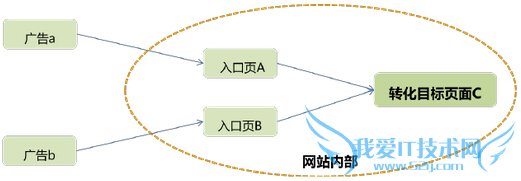 举个例子:假如你的网站有A、B、C三个页面,现在你要在站外投放广告推广C,即访客到达转化目标页面C就定义为转化成功。站外广告一个是a,一个是b,分 别放到不同其他网站广告位上。其中,点击站外广告a跳转到你网站的页面A,站外广告b跳转到页面B。这样,页面A相对于站外广告a是它的入口页;同样,B 是站外广告b的入口页。通过访问入口报告中A、B页面的转化指标,就能看出到达页面C完成转化的贡献,假设页面A和广告a搭配的转化要好,则从A入口页开始的访问次数和PV高,说明用户浏览这个页面比较多,可以通过数量考量这个维度;另一方面,A进入的转化次数比较多说明了更多的转化到C页面。那我们就 不难理解通过A页面的转化率了,这个比率(转化次数/访问次数)高,说明从该入口页来的流量大部分都转化C页面成功。