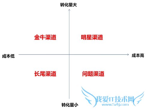 从上述案例数据比较看出“搜索引擎”的转化率最高,说明从搜索引擎成为注册用户(指定的转化目标)的可能性更高。因此,通过此方式即可看出每个流量来源的转化量和转化率,由此控制平均转化成本。尤其是很多做电子商务类型的公司,会购买大量的广告来源引入流量,那如何制定策略来进行投放呢?以下会从转化量和成本的角度细分看待这些广告渠道: