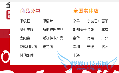 如图,是笔者所负责的网站导航,还有一部分没有展示出来,但从当前的图上可以看到商品分类和实体店分类,让人看一下就可以清楚网站的整体结构和层次了。