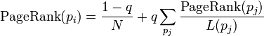 最后,即所有这些被换算为一个百分比再乘上一个系数q。由于下面的算法,没有页面的PageRank会是0。所以,Google通过数学系统给了每个页面一个最小值。