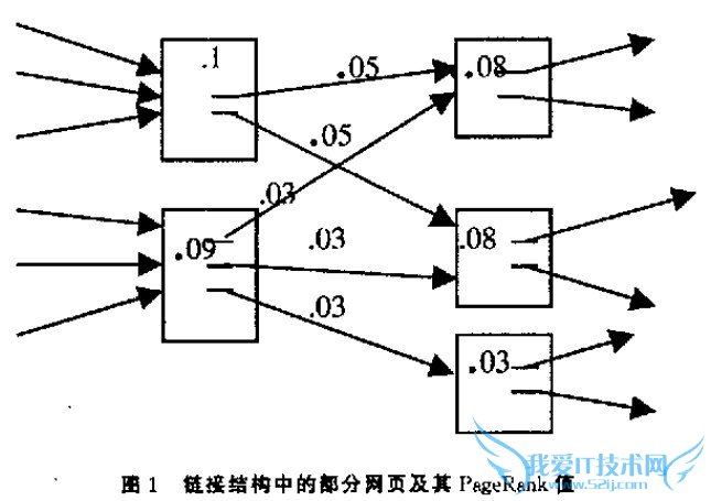 1)在初始阶段:网页通过链接关系构建起Web图,每个页面设置相同的PageRank值,通过若干轮的计算,会得到每个页面所获得的最终PageRank值。随着每一轮的计算进行,网页当前的PageRank值会不断得到更新。