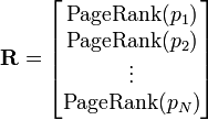 PageRank值是一个特殊矩阵中的特征向量。这个特征向量为: