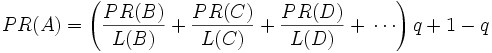 这个公式就是.S Brin 和 L. Page 在《The Anatomy of a Large- scale Hypertextual Web Search Engine Computer Networks and ISDN Systems 》定义的公式。