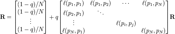 其中矩阵为 A= q × P + ( 1 一 q) *