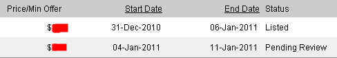 上图的第二个域名是刚才QQPCC准备拍卖的域名,这时尚处于“Pending Review”状态,也就是说,这时还得接受SnapNames的审查,上面那一个是QQPCC在早些时候放上去拍卖的,已经通过审查,状态已经变成了“Listed”。