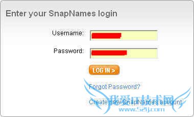 4、新界面提醒你将跳转到SnapNames,点击“Submit”按钮后跳转到SnapNames,输入你SnapNames的用户名和密码,如下图所示。