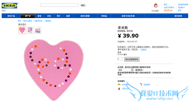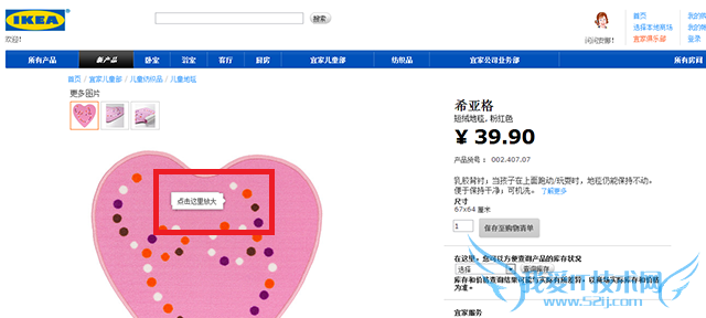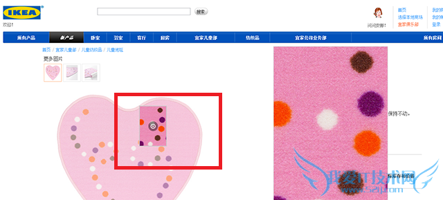 鼠标在图片上悬停时,图片右侧会出现关于商品的细节展示,这是一个在商品详情页中很常见的功能。但使用过程中会发现,就算用户的鼠标无意识的划过图片,细节展示依然会马上呈现,这或多或少会影响到用户体验,而IKEA的网站则很自然地解决了这一问题。