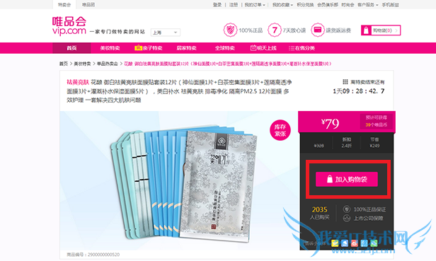 价格、标签,以及“加入购物袋”按钮都使用了鲜亮的玫红色;“购物袋”相较于“购物车”也更加生活化。