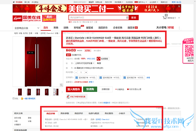 国美在线在商品详情页上首先列出一系列用户真正需要了解的关键点,再在接下来的部分中一一详细介绍。