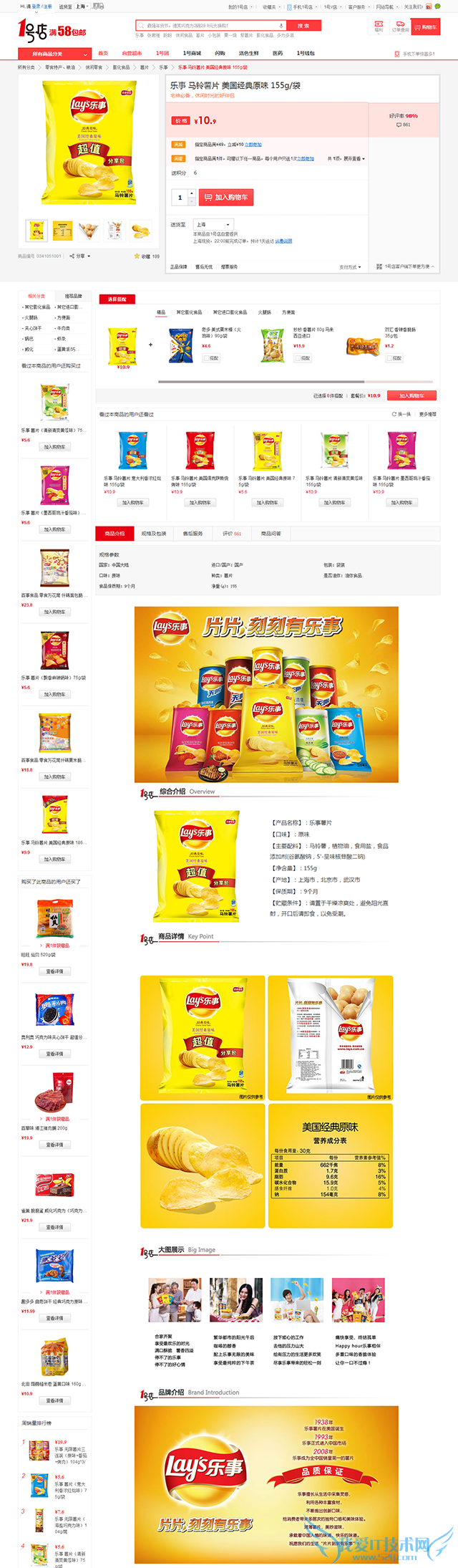 一号店商品详情页的页面长度控制比较恰当,尽量把相关事项交代清楚,不加入其他可有可无的成分。