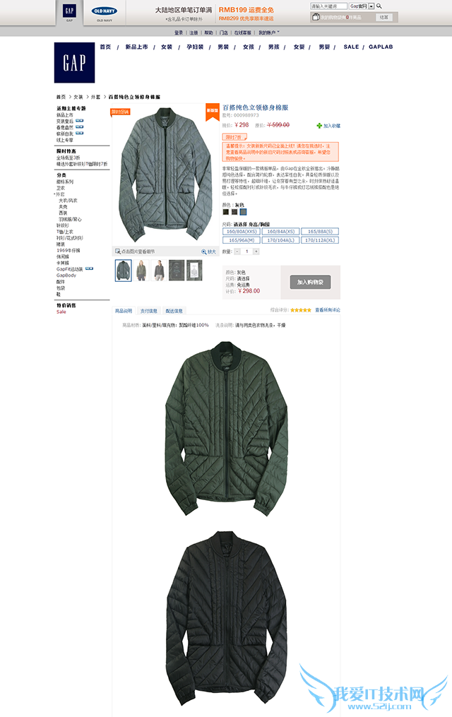 GAP的商品详情页几乎没有任何多余的部分,页面中的内容都围绕着一个商品而展开,为用户营造出良好舒适的购物环境。