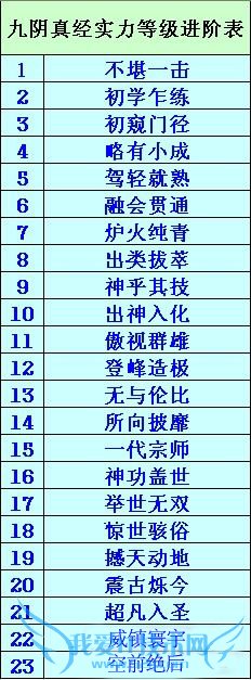 九阴真经实力等级进阶表: