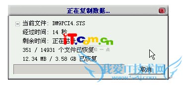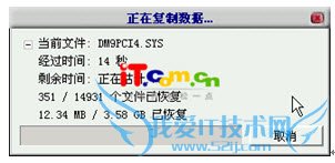 然后就开始恢复数据了,这个过程是比较慢的,我恢复3.58G的数据用了将近一个半小时。恢复完毕后,在相应盘内就可以看到恢复出来的数据了。