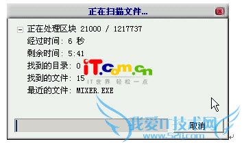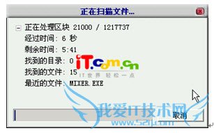 然后就会扫描要恢复的文件,时间比较长,是根据要恢复数据的分区大小来决定的。我的10G分区中,有3.6G的数据要恢复,需要将近6分钟的时间来扫描。