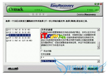 右边的全面扫描一般不需要选择,如果你接下来恢复数据时候发现不是所有被删除的文件都能被恢复,那么可以选择这个选项再重新恢复一遍。