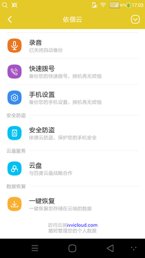 如今,每个品牌在发布手机的同时,都会内置云端服务,ivvi小骨Pro的依偎云就是这样一款软件,用户登录后可对记事本、联系人、照片、录音等信息进行同步和备份,一旦更换或者丢失手机,都能通过云端服务找回重要信息。