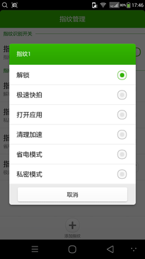 ivvi小骨Pro和大多数智能手机一样,把指纹模块设计在机身背部,由于该机采用了4.7英寸屏幕,所以单手握持时中指也有了用武之地,这样算下来,左/右手就有4根手指可以使用,因此用户可在熄屏解锁、极速快拍、打开应用、清理加速、省电模式、私密模式中,挑选4个常用功能使用。