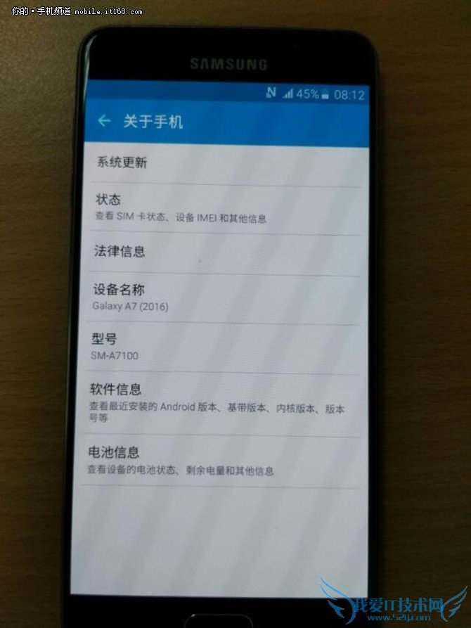 从此次网友@红A酱在微博上曝光的2016款三星GALAXY A7的真机来看,手机的型号为SM-A7100,在外形设计上确与此前我们见到的那样,采用了与三星GALAXY S6相同的双面玻璃加金属中框的设计,据称外观质感等各方面的提升非常大。