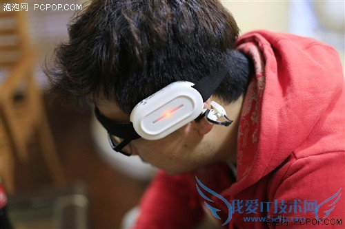 佩戴意念方舟的感应耳机时需要注意,一定要将小芯片那一面紧贴皮肤,中间不要压着头发,并且要将小夹子夹在耳朵上,不过佩戴时间长以后,耳朵会比较疼。当我们调至1频道时会显示红色LED灯,而2频道会显示绿色灯,这样通过颜色就可以快速分辨出选择的频道号。