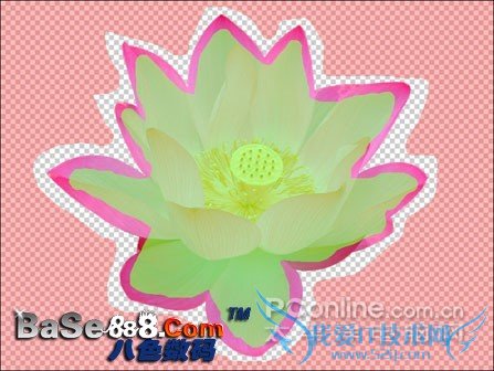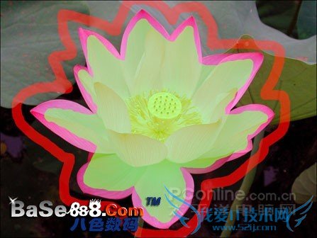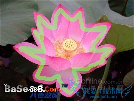 选择工具栏中的丢弃色工具,在工具参数面板中设置适当的笔刷大小,然后沿荷花的外部绘制大致轮廓,如图8所示。同样,在绘制的过程中,不要碰到荷花的边缘,如果有绘制错误的地方,可以按住Alt键擦去这些错误部分。