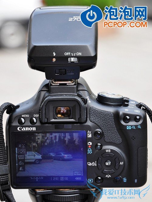 机身左肩增加拾音麦克风,转盘为银色,是500D的主要外观特征