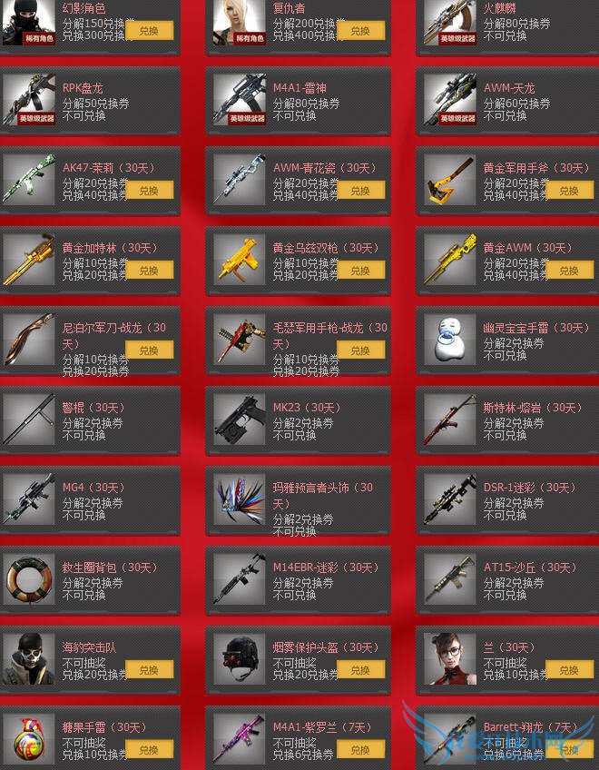 6、不同级别道具可分解的兑换券数量不同,集齐一定数量兑换券后可直接兑换稀有道具。
