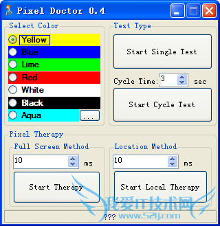 PixelDoctor是一个简单易用的液晶显示器坏点检测程序,可用于修复LCD上的坏点。修复液晶坏点并非不可能,已有一些通过颜色切换来实现唤醒“死去”坏点的例子。需要注意的是,液晶坏点的成因比较复杂,物理缺陷是很难修复的,因此不可能100%管用,仅供测试。