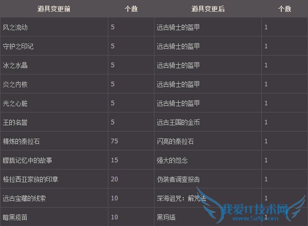 因远古地下城地域变更及改编及远古地下城任务删除,导致神器购买材料变得不必要,这部分,将根据一定比例变更为购买传说装备所必须的新材料道具