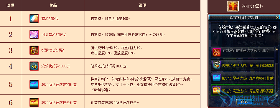 每个大区根据在线的人数不同,达到不同阶段的时间也不同。点击下图中绿色文字部分可以领取奖励。