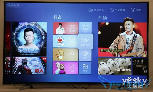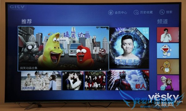 酷开K60的牌照方为GITV(银河央广),从爱奇艺被GITV收编后,其内容资源得到了巨大的飞跃。夏洛特烦恼、港囧、怦然星动、西游记之大圣归来、蚁人等众多最新最热的票房大作都可以在酷开K60上看到,对于购买这款产品的用户还是建议购买会员通票,这样的话才能看到更新更全的内容,这也是现在智能电视的主流运营方式。