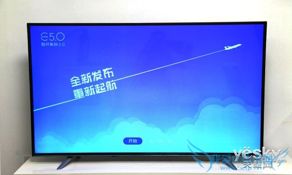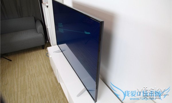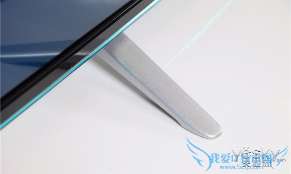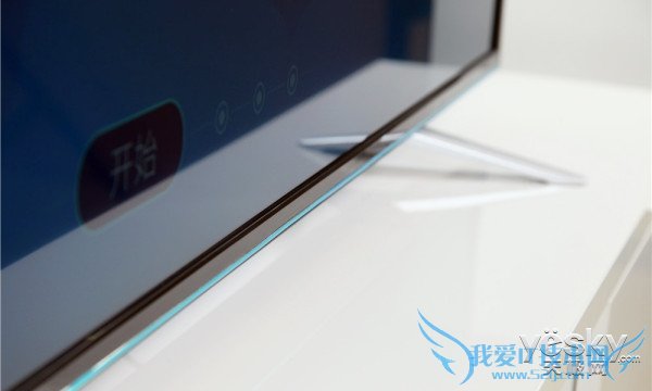 酷开K60在设计上虽然传统,但并不死板,底部的天蓝色装饰带很好地将产品的时尚感提升。另外由于考虑到产品的着地平稳性,酷开K60机身与支架的角度非常大,较低的悬空高度大幅提升了电视的稳定性。