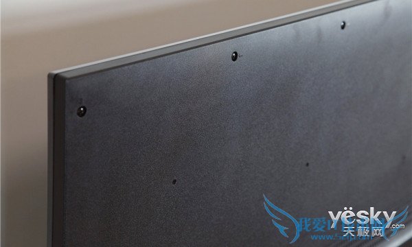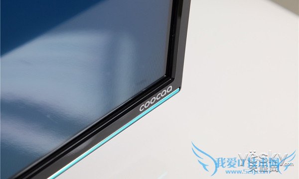 酷开的LOGO位于面板右下侧,激光膜内打印的方式简约内敛,这也是年轻人所崇尚的产品设计细节之一。