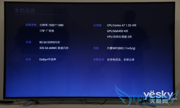 酷开K60配置有四核A7处理器,四核Mali 450GPU和双核解码VPU。配置标准算是主流。1920X1080的全高清屏幕对于普通家庭来说已然足够,没有采用4K屏可能也是考虑到成本以及产品定位,总体来说不过不失。8G内存搭配32GeMMC高速闪存支持安装各类自定义应用。