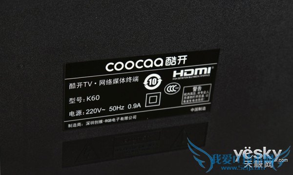 酷开K60背部采用一体式黑色阻燃工程塑料打造,在保证轻质的前提下,在强度和抗阻燃方面都有着不错的性能。这也是如今大多数家电产品都会采用的一种材料。