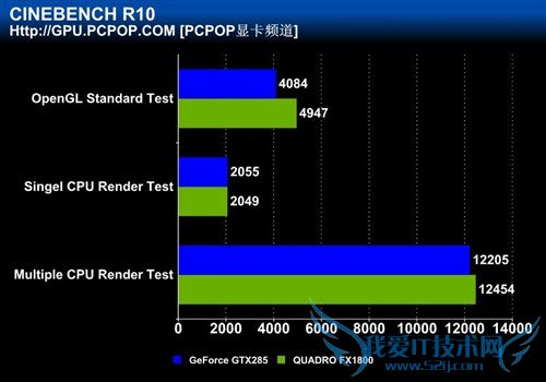 就测试成绩而言,QUADRO FX1800在显示子项上依然是明显领先于GeForce GTX285,在单CPU和多CPU测试环节,由于基本脱离了显卡的参与,仅仅是衡量系统处理器运算能力,所以两套系统成绩几乎一致。
