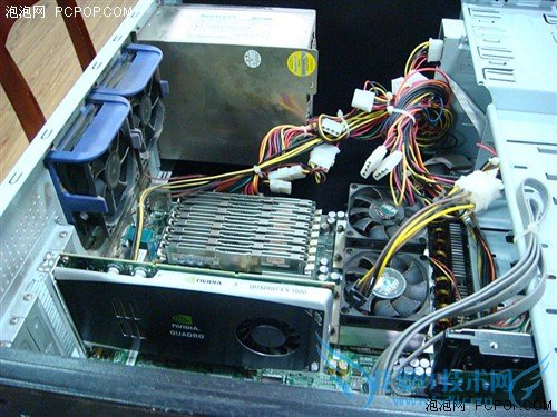 整个专业图形测试系统搭配好后,QUADRO FX1800专业显卡在其中反而显得不那么乍眼,一般人的注意力更多的都被双CPU和插得满满的内存缩吸引了。然而体型的大小不是决定因素,QUADRO FX1800在其中虽然最不起眼,但却是整套系统的灵魂所在!