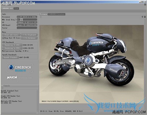 此外,我们还采用了业内广为使用的CINEBENCH测试软件,版本为最新的R10。它采用的业内知名专业图形软件Cinema 4D的图形引擎作为基础,结合了针对显卡和CPU的两种测试。