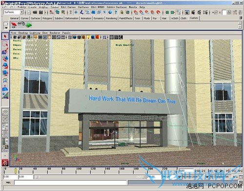 像MAYA这样的软件中,如果使用QUADRO专业显卡,我们还能开启“High Quality”显示模式。就是利用GPU强大的运算能力,以非常逼近最终渲染效果的方式,实时渲染画面,将灯光、材质、贴图甚至阴影反射都可以一一显示,给与动画工程师最快捷的调整模式!