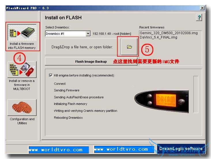 利用FLASHWIZARD 6.3快速为你的DM刷系统 首选需要准备的工作是 下载 FLASHWIZARD 刷新的固件 img 文件,(刷机前先备份一下你的共享账号)