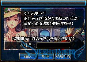 相关问题:dnf推荐好友畅玩DNF 推荐新玩家与自己推荐的QQ号下...