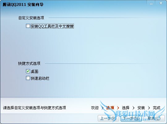2、取消“安装QQ工具栏及中文搜搜”,取消“快速启动栏”。