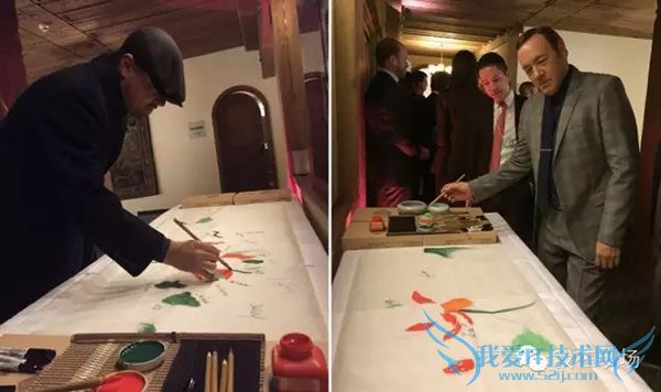 门口签到的一幅丝绸画就让波诺觉得很意思。