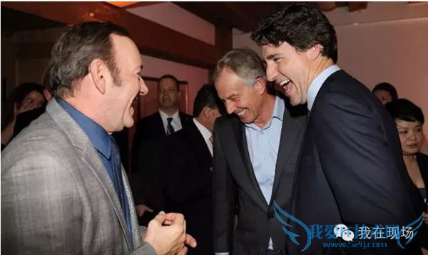 好象就是来到一个大学聚会,英国首相卡梅伦穿着一件普通的浅蓝色衬衫,不打领带,进了门左顾右盼,他在二十几平方米的房间里先是看到了爱尔兰乐队U2主唱波诺,他还是戴着标志性的墨镜,他们是老朋友了。然后发现《纸牌屋》的主演凯文·史派西也在,卡梅伦此刻大概以为这是一场明星派对。
