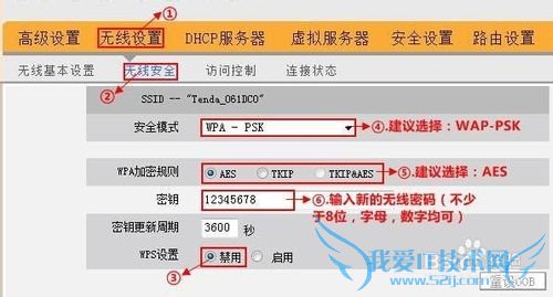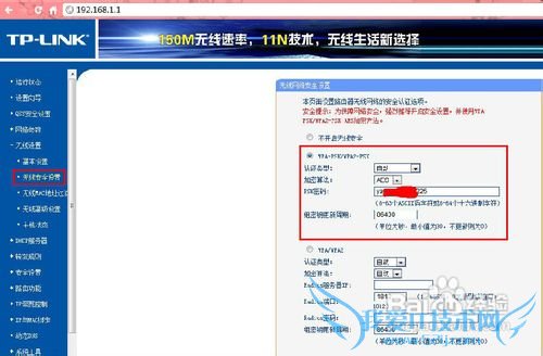 再点击“无线安全设置”,里面就可以更改密码了,一般选择WPA-PSK/WPA2-PSK加密方法(密码要8-16个的,可以字母数字组合)