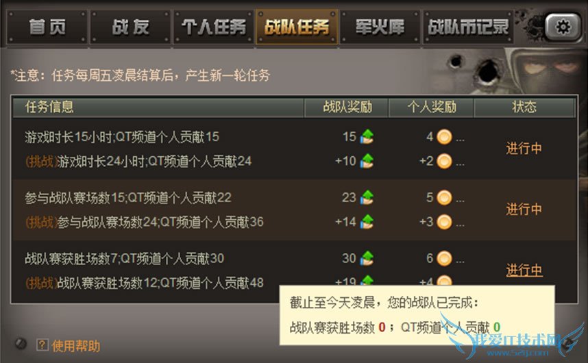 “个人任务”和“战队任务”均为每周五凌晨更新,同时上一个任务周期结束并发放奖励。
