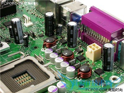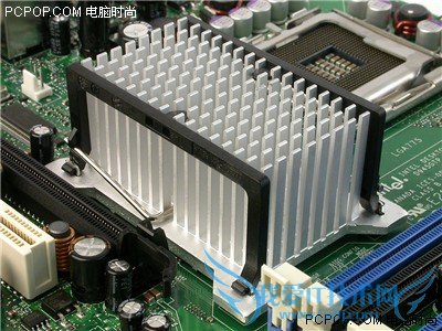 在硕大的散热片下压着FCBGA封装的82945P MCH芯片